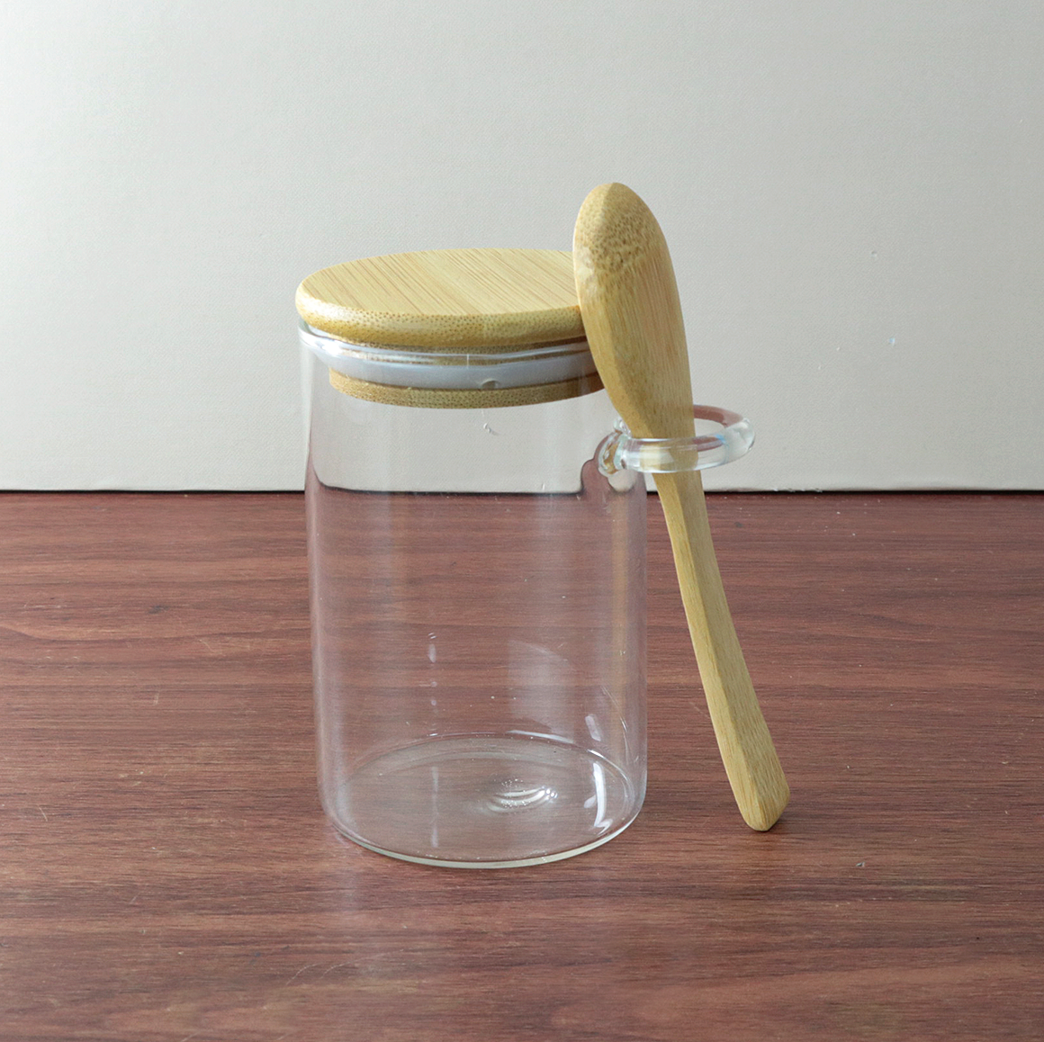 POTE HERMÉTICO DE VIDRO COM TAMPA E COLHER DE BAMBU 250ML - SXYX14574