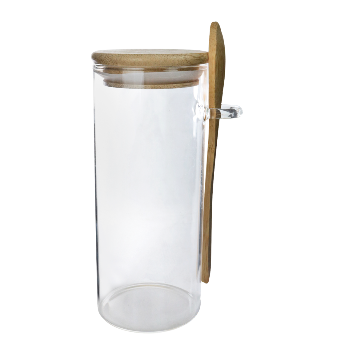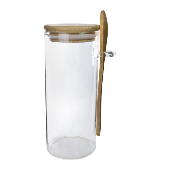 POTE HERMÉTICO DE VIDRO COM TAMPA E COLHER DE BAMBU 380ML - DT6612
