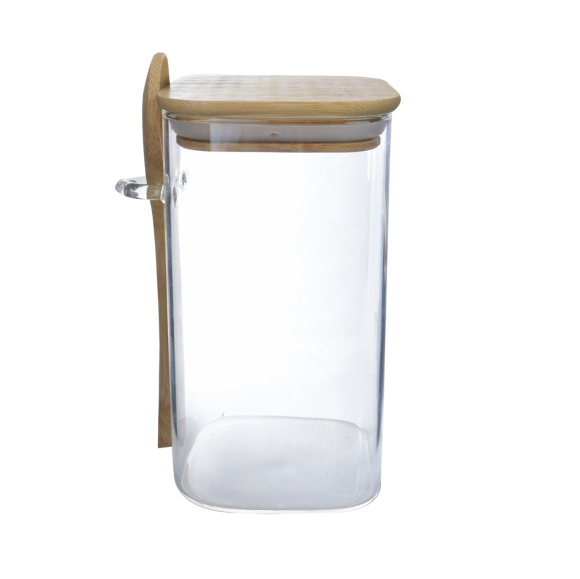POTE HERMÉTICO DE VIDRO COM TAMPA E COLHER DE BAMBU 700ML - DT6636
