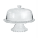 PRATO DE BOLO DE VIDRO COM PEDESTAL E TAMPA PÉROLA - VDA16010.