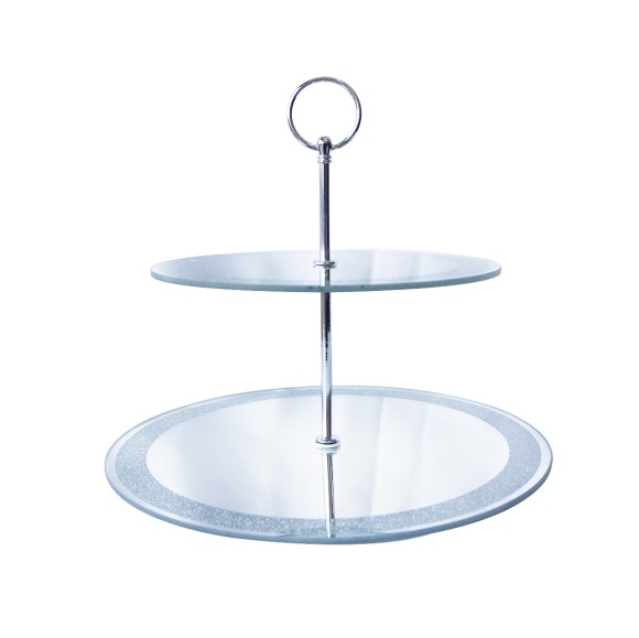 Prato com 02 andares de vidro espelhado e detalhes nas bordas.