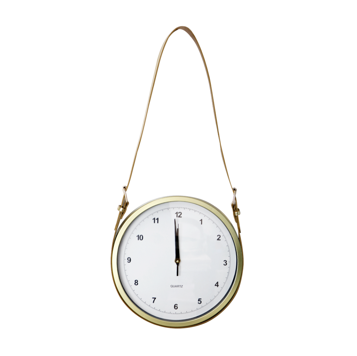 Relógio de parede decorativo de plástico 30 cm com alça de ajuste em couro sintético. Ideal para decorar e compor ambientes de sua preferência.