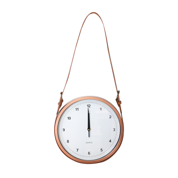 Relógio de parede decorativo de plástico 30 cm com alça de ajuste em couro sintético. Ideal para decorar e compor ambientes de sua preferência.
