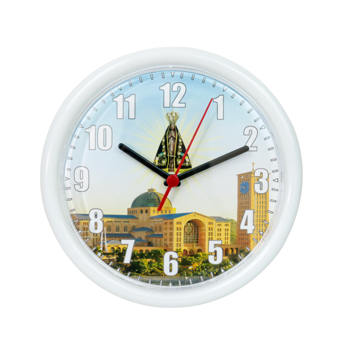 Este relógio de parede em particular possui um diâmetro de 24cm, o que o torna adequado para ser colocado em espaços menores ou para quem prefere um estilo mais discreto. Ele funciona com pilhas, o que o torna independente de uma fonta de energia elétrica direta e permite que seja colocado em qualquer lugar sem a necessidade de fios ou tomadas próximas.