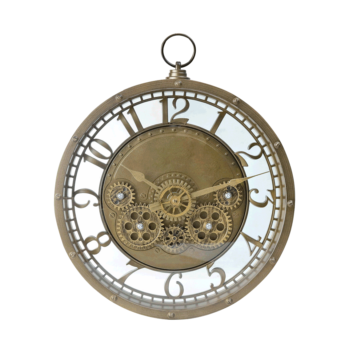 RELÓGIO DE PAREDE VINTAGE COM ENGRENAGENS VISÍVEIS E COR ENVELHECIDA 26,7X26,7X5,3 - FJ90510-DOU