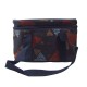 Sacola térmica em design de estampa geométrica. Abertura de zíper e forro interno prateado térmico de fácil limpeza e higienização.