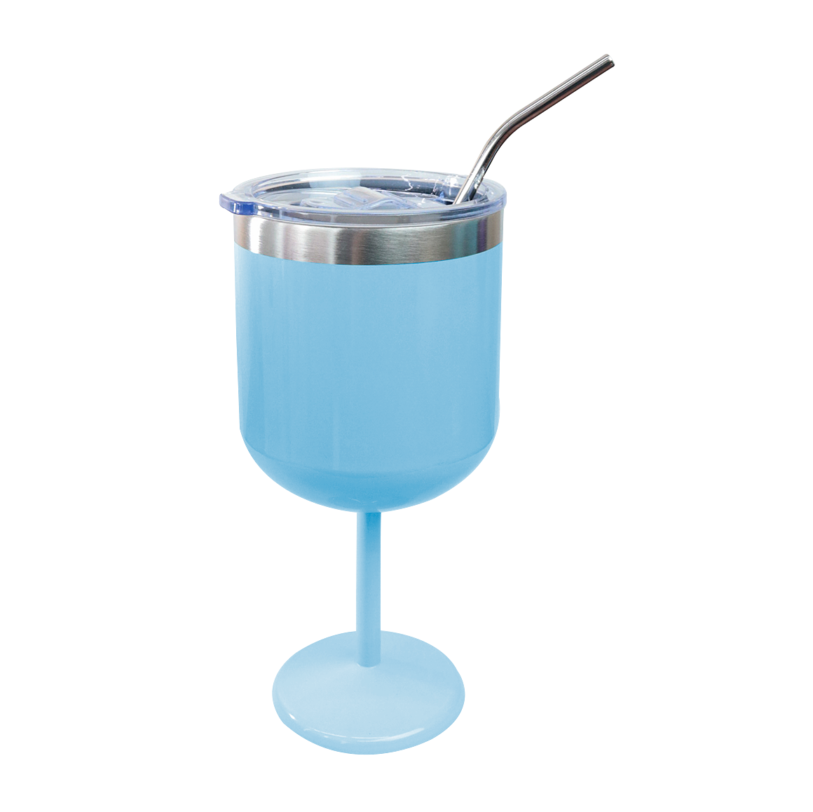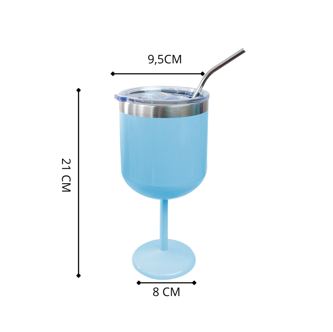 TAÇA INOX COM TAMPA DE PLÁSTICO E CANUDO DE INOX 550ML - GDR1462-AZ