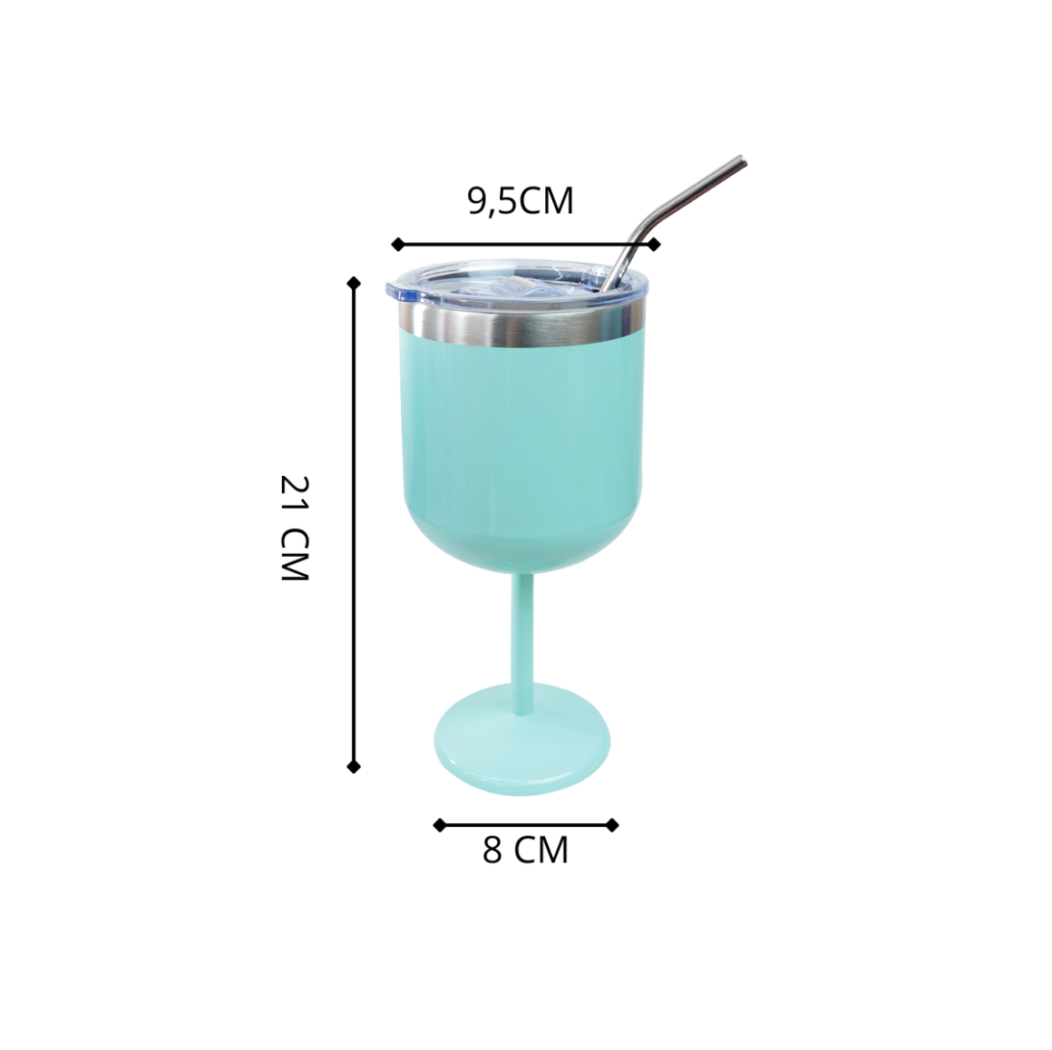 Taça com interior em inox e parte externa colorida, acompanhada de tampa plástica prática e canudo reutilizável em inox. Perfeita para bebidas geladas, não possui função térmica ou isotérmica.