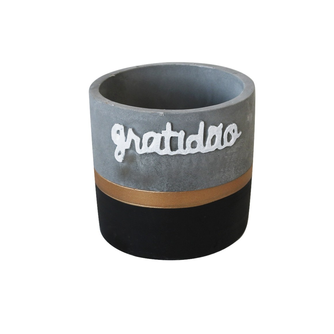 VASO DE CIMENTO COM FRASE GRATIDÃO 10X9CM - GDR0553-C